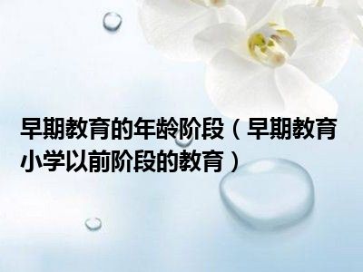 导读 目前是有很多朋友们对于早期教育 小学以前阶段的教育这个信息比较感兴趣,那么小编也是收集了一些早期教育 小学以前阶段的教育相关的信息...