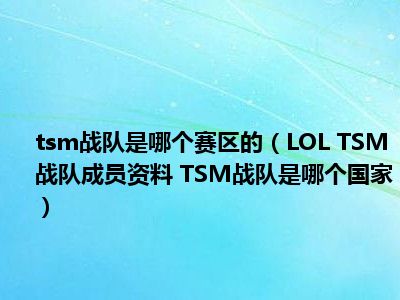 导读 相信目前很多小伙伴对于LOL TSM战队成员资料 TSM战队是哪个国家都比较感兴趣,那么小编今天在网上也是收集了一些与LOL TSM战队成员资料...