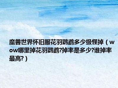 相信目前很多小伙伴对于wow哪里掉花羽鹦鹉?掉率是多少?谁掉率最高?都比较感兴趣,那么小编今天在网上也是收集了一些与wow哪里掉花羽鹦鹉?掉率是多少?谁掉率最高?相关的信息来分享给大家,希望能够帮助到大家哦。