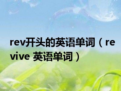 导读 目前是有很多朋友们对于revive 英语单词这个信息比较感兴趣,那么小编也是收集了一些revive 英语单词相关的信息来分享给大家,希望你会喜...