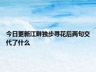 目前大家应该是对江畔独步寻花后两句交代了什么比较感兴趣的,所以今天好房网小编CC就来为大家整理了一些关于江畔独步寻花后两句交代了什么方面的相关知识来分享给大家,希望大家会喜欢哦。