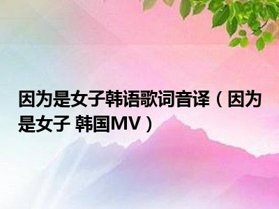 导读 目前是有很多朋友们对于因为是女子 韩国MV这个信息比较感兴趣,那么小编也是收集了一些因为是女子 韩国MV相关的信息来分享给大家,希望你...