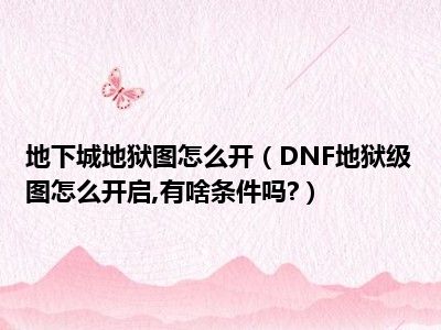 相信目前很多小伙伴对于DNF地狱级图怎么开启,有啥条件吗?都比较感兴趣,那么小编今天在网上也是收集了一些与DNF地狱级图怎么开启,有啥条件吗?相关的信息来分享给大家,希望能够帮助到大家哦。