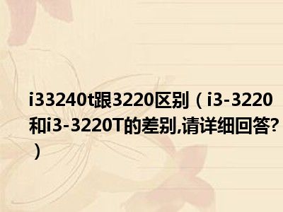 导读相信目前很多小伙伴对于i3-3220和i3-3220T的差别,请详细回答?都比较感兴趣,那么小编今天在网上也是收集了一些与i3-3220和i3-3220T的差别,...