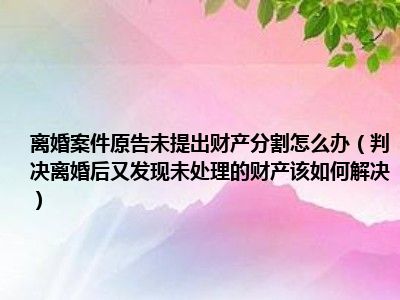 目前大家应该是对判决离婚后又发现未处理的财产该如何解决比较感兴趣的,所以今天CC就来为大家整理了一些关于判决离婚后又发现未处理的财产该如何解决方面的相关知识来分享给大家,希望大家会喜欢哦。