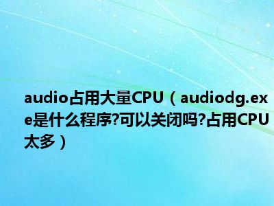 导读相信目前很多小伙伴对于audiodg.exe是什么程序?可以关闭吗?占用CPU太多。都比较感兴趣,那么小编今天在网上也是收集了一些与audiodg.exe是...