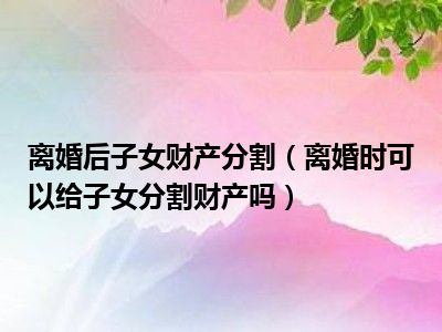 导读目前大家应该是对离婚时可以给子女分割财产吗比较感兴趣的,所以今天CC就来为大家整理了一些关于离婚时可以给子女分割财产吗方面的相关知识...