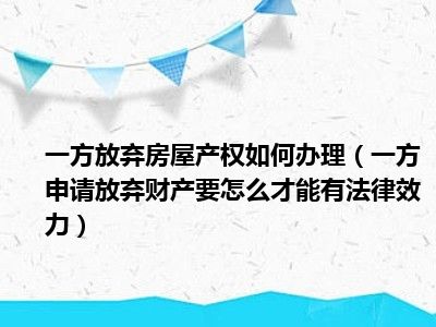 导读目前大家应该是对一方申请放弃财产要怎么才能有法律效力比较感兴趣的,所以今天CC就来为大家整理了一些关于一方申请放弃财产要怎么才能有法...