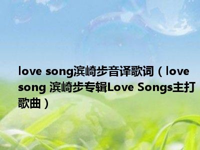 导读 目前是有很多朋友们对于love song 滨崎步专辑Love Songs主打歌曲这个信息比较感兴趣,那么小编也是收集了一些love song 滨崎步专辑Lov...