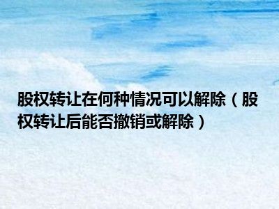 目前大家应该是对股权转让后能否撤销或解除比较感兴趣的,所以今天CC就来为大家整理了一些关于股权转让后能否撤销或解除方面的相关知识来分享给大家,希望大家会喜欢哦。