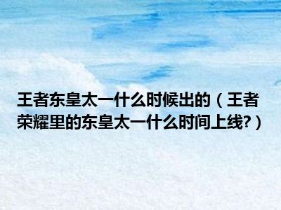 1、王者荣耀东皇太一什么时候出?近期王者荣耀中曝光了很多新的英雄,东皇太一就是其中之一,下面为大家带来王者荣耀东皇太一具体上线时间介绍。