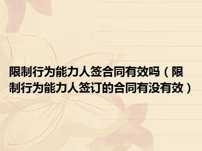 目前大家应该是对限制行为能力人签订的合同有没有效比较感兴趣的,所以今天CC就来为大家整理了一些关于限制行为能力人签订的合同有没有效方面的相关知识来分享给大家,希望大家会喜欢哦。