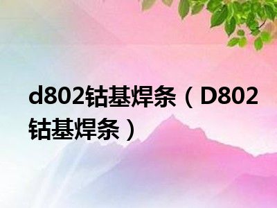 导读目前是有很多朋友们对于D802钴基焊条这个信息比较感兴趣,那么小编也是收集了一些D802钴基焊条相关的信息来分享给大家,希望你会喜欢哦。...
