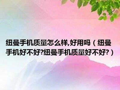 相信目前很多小伙伴对于纽曼手机好不好?纽曼手机质量好不好?都比较感兴趣,那么小编今天在网上也是收集了一些与纽曼手机好不好?纽曼手机质量好不好?相关的信息来分享给大家,希望能够帮助到大家哦。