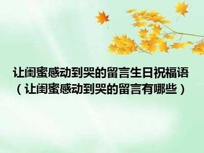相信目前很多小伙伴对于让闺蜜感动到哭的留言有哪些都比较感兴趣,那么小编今天在网上也是收集了一些与让闺蜜感动到哭的留言有哪些相关的信息来分享给大家,希望能够帮助到大家哦。