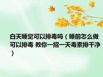 目前大家应该是对睡前怎么做可以排毒 教你一招一天毒素排干净比较感兴趣的,所以今天小编CC就来为大家整理了一些关于睡前怎么做可以排毒 教你一招一天毒素排干净方面的相关知识来分享给大家,希望大家会喜欢哦。