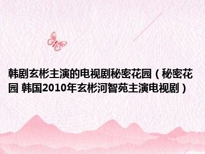 导读 目前是有很多朋友们对于秘密花园 韩国2010年玄彬、河智苑主演电视剧这个信息比较感兴趣,那么小编也是收集了一些秘密花园 韩国2010年玄彬...