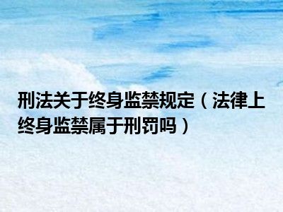 目前大家应该是对法律上终身监禁属于刑罚吗比较感兴趣的,所以今天CC就来为大家整理了一些关于法律上终身监禁属于刑罚吗方面的相关知识来分享给大家,希望大家会喜欢哦。