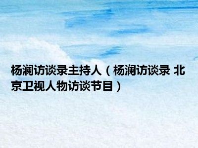 导读 目前是有很多朋友们对于杨澜访谈录 北京卫视人物访谈节目这个信息比较感兴趣,那么小编也是收集了一些杨澜访谈录 北京卫视人物访谈节目相...