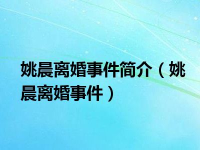 导读目前是有很多朋友们对于姚晨离婚事件这个信息比较感兴趣,那么小编也是收集了一些姚晨离婚事件相关的信息来分享给大家,希望你会喜欢哦。...