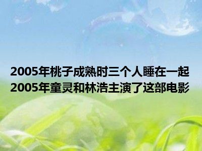 1、《蜜桃成熟时2005之三人同眠》是由钱文琦执导,童玲、林豪等人主演的一部情色片。