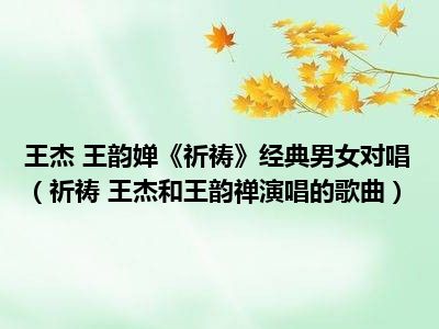 导读 目前是有很多朋友们对于祈祷 王杰和王韵禅演唱的歌曲这个信息比较感兴趣,那么小编也是收集了一些祈祷 王杰和王韵禅演唱的歌曲相关的信息...