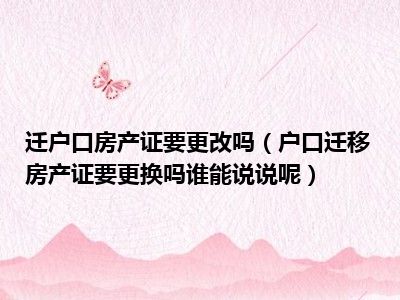 导读 目前大家应该是对户口迁移房产证要更换吗谁能说说呢比较感兴趣的,所以今天好房网小编CC就来为大家整理了一些关于户口迁移房产证要更换吗谁