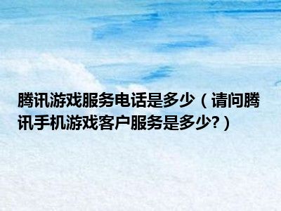 相信目前很多小伙伴对于请问腾讯手机游戏客户服务是多少?都比较感兴趣,那么小编今天在网上也是收集了一些与请问腾讯手机游戏客户服务是多少?相关的信息来分享给大家,希望能够帮助到大家哦。