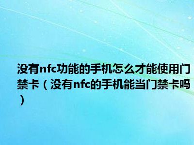 1、 没有nfc的手机能当门禁卡吗