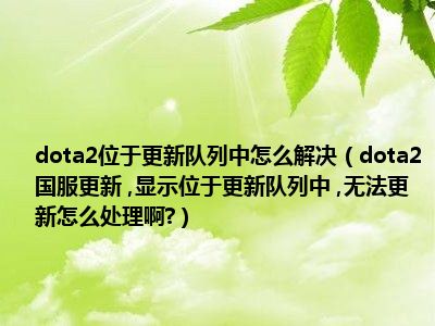 相信目前很多小伙伴对于dota2国服更新 ,显示位于更新队列中 ,无法更新怎么处理啊?都比较感兴趣,那么小编今天在网上也是收集了一些与dota2国服更新 ,显示位于更新队列中 ,无法更新怎么处理啊?相关的信息来分享给大家,希望能够帮助到大家哦。