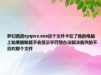 相信目前很多小伙伴对于梦幻西游xyqsvc exe問題 这个文件搞到我电脑很卡 删除了会显示不了人物 求解决办法 真心不爽那个文件都比较感兴趣