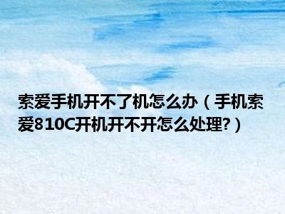 相信目前很多小伙伴对于手机索爱810C开机开不开怎么处理?都比较感兴趣,那么小编今天在网上也是收集了一些与手机索爱810C开机开不开怎么处理?相关的信息来分享给大家,希望能够帮助到大家哦。