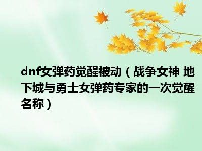 导读 目前是有很多朋友们对于战争女神 地下城与勇士女弹药专家的一次觉醒名称这个信息比较感兴趣,那么小编也是收集了一些战争女神 地下城与勇...