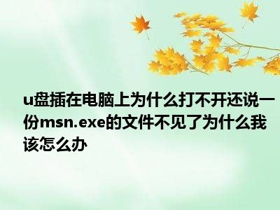 相信目前很多小伙伴对于U盘插在电脑上怎么打不开?还说少个msn.exe文件,这是为什么???怎么办呢?都比较感兴趣,那么小编今天在网上也是收集了一些与U盘插在电脑上怎么打不开?还说少个msn.exe文件,这是为什么???怎么办呢?相关的信息来分享给大家,希望能够帮助到大家哦。