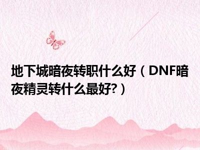 相信目前很多小伙伴对于DNF暗夜精灵转什么最好?都比较感兴趣,那么小编今天在网上也是收集了一些与DNF暗夜精灵转什么最好?相关的信息来分