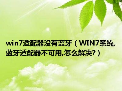 相信目前很多小伙伴对于WIN7系统,蓝牙适配器不可用,怎么解决?都比较感兴趣,那么小编今天在网上也是收集了一些与WIN7系统,蓝牙适配器不可用,怎么解决?相关的信息来分享给大家,希望能够帮助到大家哦。
