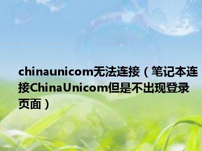 相信目前很多小伙伴对于笔记本连接ChinaUnicom但是不出现登录页面都比较感兴趣,那么小编今天在网上也是收集了一些与笔记本连接ChinaUnicom但是不出现登录页面相关的信息来分享给大家,希望能够帮助到大家哦。