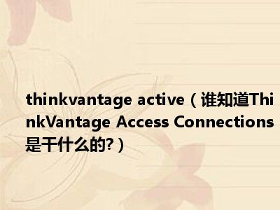 相信目前很多小伙伴对于谁知道ThinkVantage Access Connections是干什么的?都比较感兴趣,那么小编今天在网上也是收集了一些与谁知道ThinkVantage Access Connections是干什么的?相关的信息来分享给大家,希望能够帮助到大家哦。