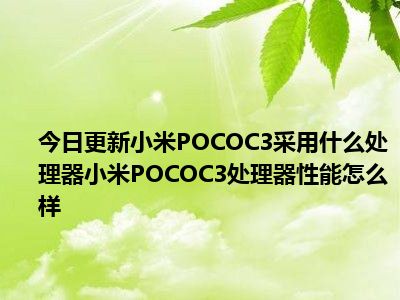 目前上述的内容应该能够为大家解答出大家对于小米POCOC3采用什么处理器小米POCOC3处理器性能怎么样的疑惑了,所以如果大家还想要了解更多的知识内容,也可以关注本站其他文章进行了解哦。