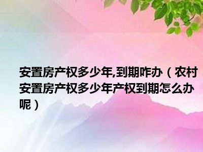 安置房产权多少年安置房初是没有房产证的,但人可以到相关房管部门办理安置房的房产证。在办理房产证后,即补缴了土地使用金后,安置房就变成了商品房。此时过户交易与一般的房屋没有任何区别之处,也就是说此时的安置房的产权与一般商品房的产权是一样的。一般民用住宅建筑权属年限为70年,那么取得房产证后,安置房的产权为70年。安置房产权证办理房地产评估。到所在县区或市的房产交易大厅。办理这项时先要决定由谁负责评估费用,买卖双方均可,申请人要填委托书,提交房产证原件及复印件、土地证原件及复印件、房屋平面图(在房产证的后一页的图)、申请人的身份证原件及复印件。原件在提交后可拿走,自己保管以防丢失,留复印件在交易大厅即可。评估由所在的市一级房产评估机构负责,由于要评估的多,往往得等一段时间。评估费占房产评估额的0.5%,交完钱后给你两份评估报告。交营业税。到房产所在的地税分局或地税所办理。需提交购房合同原件及复印件、买卖双方身份证复印件、房产评估报告。(普通住房满5年免征,不满5年差额征收;非普通住房不足5年全额征收,满5年差额征收)办理房产证过户。到房产交易大厅办理,需提交房产证原件及复印件,土地证原件及复印件,房屋平面图(在房产证的后一页的图,要把里面内容挡住复印成空白表),申请人的身份证原件及复印件,完税证明(地税上给的东西),房产评估报告。这是需要买卖双方都到签字,按手印,结婚的需要带上夫妻双方的身份证及复印件。交易费,按房屋3元/平方米收,签完字后,还需要到当地财政局交契税。