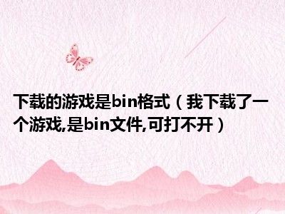 相信目前很多小伙伴对于我下载了一个游戏,是bin文件,可打不开。都比较感兴趣,那么小编今天在网上也是收集了一些与我下载了一个游戏,是bin文件,可打不开。相关的信息来分享给大家,希望能够帮助到大家哦。