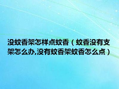 目前大家应该是对蚊香没有支架怎么办,没有蚊香架蚊香怎么点比较感兴趣的,所以今天小编CC就来为大家整理了一些关于蚊香没有支架怎么办,没有蚊香架蚊香怎么点方面的相关知识来分享给大家,希望大家会喜欢哦。