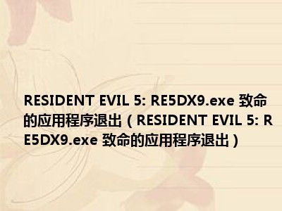 RESIDENT EVIL 5: RE5DX9.exe 致命的应用程序退出(RESIDENT EVIL 5: RE5DX9.exe 致命的应用程序退出)