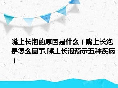 目前大家应该是对嘴上长泡是怎么回事,嘴上长泡预示五种疾病比较感兴趣的,所以今天小编CC就来为大家整理了一些关于嘴上长泡是怎么回事,嘴上长泡预示五种疾病方面的相关知识来分享给大家,希望大家会喜欢哦。