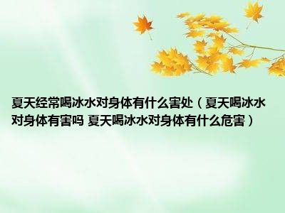 目前大家应该是对夏天喝冰水对身体有害吗 夏天喝冰水对身体有什么危害比较感兴趣的,所以今天小编CC就来为大家整理了一些关于夏天喝冰水对身体有害吗 夏天喝冰水对身体有什么危害方面的相关知识来分享给大家,希望大家会喜欢哦。