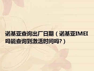 相信目前很多小伙伴对于诺基亚IMEI吗能查询到激活时间吗?都比较感兴趣,那么小编今天在网上也是收集了一些与诺基亚IMEI吗能查询到激活时间吗?相关的信息来分享给大家,希望能够帮助到大家哦。