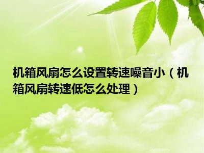 相信目前很多小伙伴对于机箱风扇转速低怎么处理都比较感兴趣,那么小编今天在网上也是收集了一些与机箱风扇转速低怎么处理相关的信息来分享给大家,希望能够帮助到大家哦。