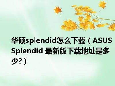 相信目前很多小伙伴对于ASUS Splendid 最新版下载地址是多少?都比较感兴趣,那么小编今天在网上也是收集了一些与ASUS Splendid 最新版下载地址是多少?相关的信息来分享给大家,希望能够帮助到大家哦。