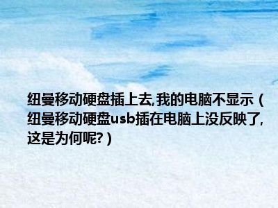 相信目前很多小伙伴对于纽曼移动硬盘usb插在电脑上没反映了,这是为何呢?都比较感兴趣,那么小编今天在网上也是收集了一些与纽曼移动硬盘usb插在电脑上没反映了,这是为何呢?相关的信息来分享给大家,希望能够帮助到大家哦。