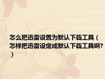 相信目前很多小伙伴对于怎样把迅雷设定成默认下载工具啊?都比较感兴趣,那么小编今天在网上也是收集了一些与怎样把迅雷设定成默认下载工具啊?相关的信息来分享给大家,希望能够帮助到大家哦。